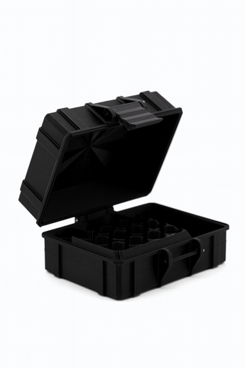 The structured interior keeps vials upright and separated, while the durable hard-shell body helps protect against impact during storage or transport. Its discreet, travel-friendly design makes it ideal for daily use, travel, gyms, clinics, or research environments.